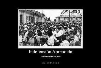 Pero, ¿qué ocurrirá si, haga lo que haga el perro, siempre lo castigamos? Una jaula con una parrilla electrificada por suelo. Un perro encerrado dentro. Una serie de descargas que se repiten a intervalos variables, indefinidamente, sin que nada de lo que haga el animal tenga como consecuencia el cese del martirio. Al principio el perro desarrollará una actividad frenética, hará todo lo que un perro puede hacer dentro de una jaula con la esperanza de que el azar y su empeño den con el comportamiento que le libere del suplicio: levantar la pata izquierda delantera, la derecha, aullar, saltar, mover el rabo… Lo que demonios sea que se le haya antojado al experimentador-torturador para que acaben de una vez las malditas descargas. Pero todo es inútil. Haga lo que haga las descargas continúan, cadenciosamente, sin piedad, sin fin. El perro acaba por dejarse caer en un rincón y no hacer nada. No come. No ladra. No se queja. No lucha. Soporta descarga tras descarga sin inmutarse. Está enfermo. Sufre indefensión aprendida.