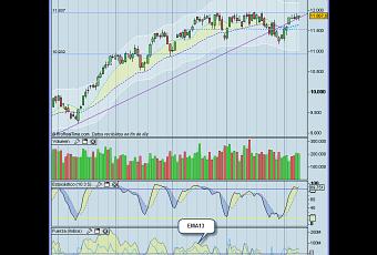 Si la EMA13 está normalmente por encima o por debajo de la línea de cero, indica que hay tendencia, alcista o bajista. Si está oscilando alrededor de esta línea, avisa de que estamos en un mercado lateral.