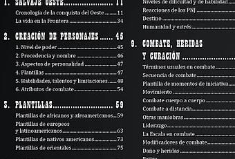 Estas son las paginas con el indice de contenidos de Peacemaker. Peacemaker, obra de Pedro Gil, Cristóbal Sánchez y Zonk/PJ, es un juego de rol histórico ambientado en el Salvaje Oeste norteamericano, desde 1800 a 1899, creado para la editorial madrileña Nosolorol Ediciones.