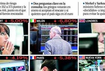 Con el simple anuncio de Papandreu de dejar decidir al pueblo griego en referéndum si quieren endeudarse más o no, los mercados del mundo se han hundido. ¡”Los Mercados” ya habían decidido qué tenía que pasar! ¿¡Cómo se le ocurre a alguien poner en duda a “Los Mercados”!? Y claro, ahora se acusa a Grecia de insolidaria, de hundir a Europa, de actuar más por razones partidistas que por razones económicas…