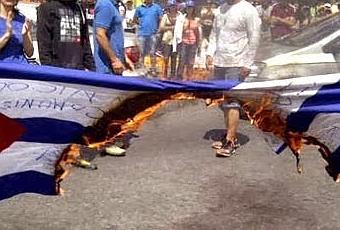 Indignación: bandera cubana quemada por los fascistas venezolanos