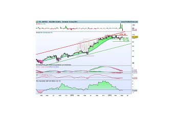 En cuanto a los indicadores, el RSc Mansfield nos confirma la pérdida de fortaleza que ha sufrido este valor, y por otro lado el Atlas de Blai5 nos indica que está próximo un fuerte movimiento. Pero lo que si que podemos observar es que el precio está acercándose sutilmente al soporte del canal alcista en que está metido el precio desde hace ya algo más de 4 años sin que el éste pierda mucha cotización.