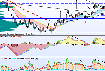 Al llegar a esa cota habría que revaluar la situación, por que el MACD ya marca una divergencia en proceso y el Koncorde también marca que el volumen para llegar a los 9.09 fue importante y ahí los alcistas dieron el "do de pecho", ahora están recogiendo frutos, pero no creo que el impulso sea sostenido, más con un IBEX que parece querer recortar o mantenerse lateral.