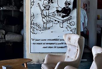 Han necesitado más de dos años para rehabilitar una vivienda que se encontraron en un estado deplorable tras sufrir un incendio. Los propietarios decidieron mantener las huellas del accidental suceso (con los pertinentes arreglos y saneamiento) en gran parte de las paredes y del techo, con el fin de dar más personalidad a los espacios. Estos los decoraron con una sabia mezcla de piezas modernas y algunas muy especiales de los años 60, adquiridas en subastas y mercadillos de la zona.