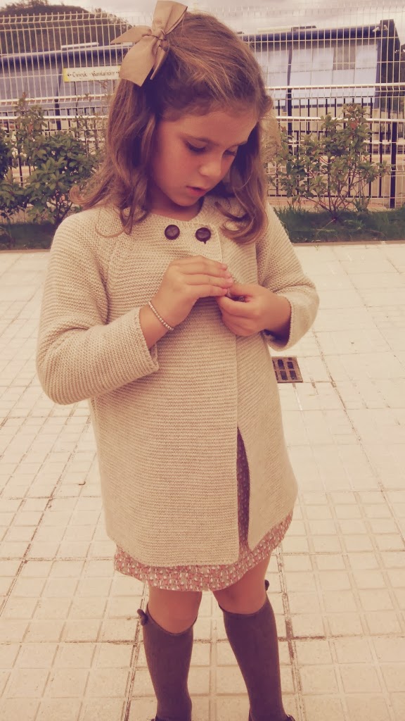 Inés no ha tenido ningún problema en posar con la mayor naturalidad para Buscando Ropita, y eso es de agradecer!!! Gracias muñecaaa y también a mamá, que nos ha dejado que vean lo bonita que eres!!Hoy un look ideal y siempre seguro para nuestras peques!!Un vestido + chaqueta-abrigo + medias + zapatos + lazooooo (que importante es el lazo). Todooooo ideal!!!!Una combinación que nunca falla!!!!