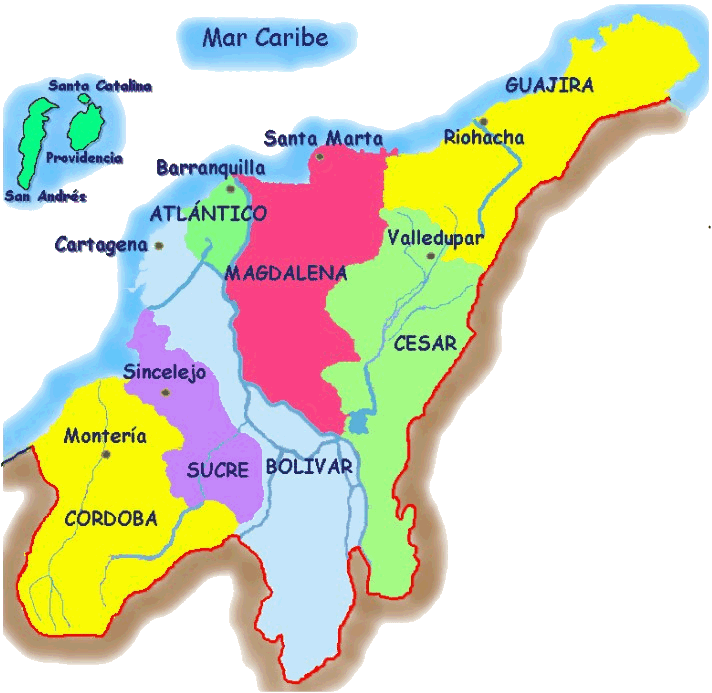 Mapa actual de la región caribe colombiana. (se incluye insular).