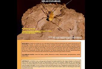 Tal y como se expone en el resumen: A finales de octubre de 2015 una fuerte borrasca dejó precipitaciones de carácter torrencial en el Archipiélago Canario. La Cueva del Llano es el tubo volcánico de mayor valor ecológico en Fuerteventura, albergando al exclusivo opilión cavernícola Maiorerus randoi. La dinámica natural de la gruta depende, en gran parte, de los aportes de agua de escorrentía a través de su jameo (apertura natural por desprendimiento del techo). En el año 2001 se realizaron unas obras de adecuación en el perímetro de la cueva, modificando el perfil del terreno y levantando un doble muro perimetral. Las lluvias acontecidas han sido una oportunidad para observar como las obras realizadas están mermando el aporte natural de agua al tubo volcánico.