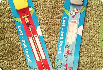 De la marca Infoband son unas bandas suaves que se colocan en la muñeca de los peques, están libres de latex y de PVC. Tienen un espacio para escribir con cualquier bolígrafo (no se borra y son resistente al agua) información útil relacionada con el niño: alergias, idioma materno si estáis de viaje en el extranjero, teléfono de contacto, su nombre...por ejemplo.