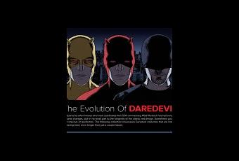 Desde esta web, nos llega una infografía que muestra cómo ha ido cambiando el traje del Hombre Sin Miedo a lo largo de sus 51 años.