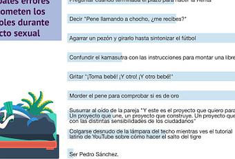 Infografía sobre los principales errores que comenten los españoles durante el acto sexual.(Infografía en tono cómico realizado por el mundo today)