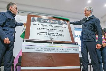Aunado a ello, dijo, se están rehabilitando y modernizando más de 30 espacios culturales de la entidad, en donde se están invirtiendo más de 200 millones de pesos.Del Mazo Maza reconoció también la labor de la Universidad Autónoma del Estado de México y del Rector Alfredo Barrera, porque esta institución ha sido un pilar del desarrollo de la entidad, así como un referente nacional de autonomía, institucionalidad y vocación educativa.Reiteró que la administración estatal y la UAEM unen fuerzas para darle un mayor impulso a la máxima casa de estudios con infraestructura y equipamiento que permitan que los alumnos tengan mejores herramientas e instalaciones.“Reiterar el compromiso del Gobierno del Estado de México de seguir muy de la mano de la Universidad, de seguir apoyando los proyectos que está máxima casa de estudios sigue impulsando, que el Rector de la Universidad ha venido haciendo con un gran empeño y una gran dedicación con mucho profesionalismo, con grandes logros y con grandes méritos.“Reiterarle todo el respaldo y el apoyo por parte del Gobierno del estado para que juntos sigamos impulsando a nuestra querida comunidad universitaria y con Patria, Ciencia y Trabajo, fortalezcamos a las presentes y futuras generaciones de nuestro querido Estado de México”, expresó.En su intervención, el Rector Alfredo Barrera Baca anunció que el próximo ciclo escolar la UAEM incrementará el número de espacios para los aspirantes que deseen ingresar a la máxima casa de estudios de la entidad, ya que se abrirán mil 500 nuevos lugares.Asimismo, agradeció la vocación institucional del Gobierno estatal, que encabeza Alfredo Del Mazo, por impulsar el programa de Becarias y Becarios de Excelencia, que beneficiará a 86 universitarios de esta casa de estudios, quienes podrán realizar una estancia profesional por hasta seis semanas en algunos de los 16 países que contempla este programa, donde avanzarán en sus respectivos proyectos de formación profesional.