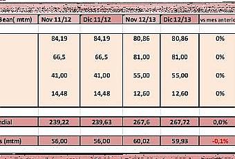 La producción y los stocks apenas varían vs mes anterior