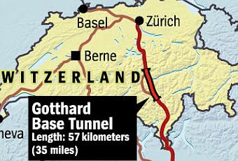 57 kilómetros bajo los Alpes. Este doble túnel reducirá el tiempo de viaje por línea de alta velocidad de forma considerable entre Alermania y el norte de Italia. Es un túnel "de base", cosa que significa está nivelado en el subsuelo de la montaña. Que no haya cuestas es importante, porque en este planeta tenemos bastante gravedad y evitar cuestas ahorra una cantidad inimaginable de energía.