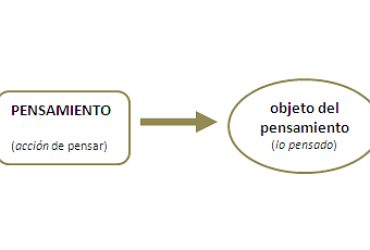 En todo proceso de pensamiento se dan dos elementos: el pensamiento en sí (la acción de pensar) y lo pensado, el objeto del pensamiento.