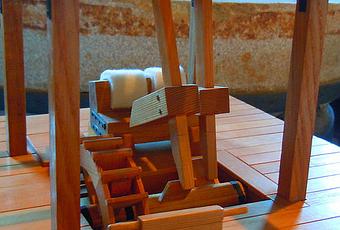 Reproducción en madera natural ingenio molino noria hidráulica. Siglo XI .