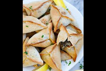- Hornear: Cubra las bandejas para hornear con papel pergamino y coloque los triángulos de espinaca (fatayer) encima de cada bandeja. Hornee durante 10-15 minutos o hasta que la parte posterior de los pasteles comience a dorarse. No los hornees demasiado, para que no se sequen.