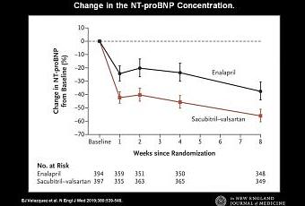 Los pacientes muy mayores están poco representados en este estudio y como siempre un ensayo clínico que informa resultados de cambio de valor de un examen (en este caso NT-proBNP y BNP) es menos orientador en la práctica clínica que un desenlace clínicamente relevante para los pacientes (mejoría en capacidad funcional, mortalidad, calidad de vida, etc) . Los autores explicitan “también realizamos análisis de resultados clínicos exploratorios, incluida la incidencia de un compuesto de muerte, rehospitalización por insuficiencia cardíaca, implantación de un dispositivo de asistencia ventricular izquierda, inclusión en la lista de pacientes elegibles para trasplante cardíaco, una visita no planificada para insuficiencia cardíaca aguda que llevó al uso de diuréticos intravenosos, un aumento en la dosis de diuréticos de más del 50% o el uso de un fármaco adicional para la insuficiencia cardíaca”. Estos desenlaces clínicamente relevantes sólo reportan beneficio para tasa más baja de rehospitalización por insuficiencia cardíaca a las 8 semanas que la terapia con enalapril.