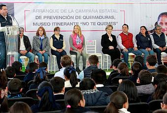 Toluca, Estado de México. Para concientizar a los alumnos de preescolar y primaria sobre la prevención de quemaduras dentro y fuera de casa, la Secretaría de Educación, en coordinación con el Instituto de Salud del Estado de México (ISEM) y la Fundación Michou y Mau, inició la Campaña Estatal de Prevención de Quemaduras “No te Quemes”.En la Primaria “Lic. Gustavo Díaz Ordaz”, el Secretario de Educación, Alejandro Fernández Campillo, acompañado por las Damas Voluntarias del ISEM, Mercedes Rangel de O’shea, y de la Secretaría de Educación, Silvia Vives de Fernández, dijo que el “Museo Itinerante de Prevención”, con el que inicia esta campaña, fomentará en los pequeños, a través de juegos, videos e imágenes acciones preventivas para evitar incendios en sus hogares.Aseguró que es prioridad del Gobernador Alfredo Del Mazo Maza trabajar para salvaguardar la vida de todos los que integran la comunidad escolar, por ello “trabajemos de la mano, ustedes los alumnos, los papás, los maestros y nosotros, las autoridades educativas, porque si estos cuatro nos juntamos y hacemos un gran esfuerzo, vamos a hacer una escuela fuerte”.Asimismo, el Jefe de la Unidad para Niños Quemados del Hospital General “Dr. Nicolás San Juan”, Pablo Rodríguez Ferreira, expresó que el motivo de este programa es fomentar en las nuevas generaciones la cultura de la prevención y disminuir así el índice de personas que sufren alguna quemadura.El “Museo Itinerante de Prevención” recorrerá hasta el 15 de marzo del próximo año, 340 escuelas del Estado de México, ubicados en 42 municipios, dando prioridad a aquellos que registran mayor incidencia de pequeños con quemaduras.