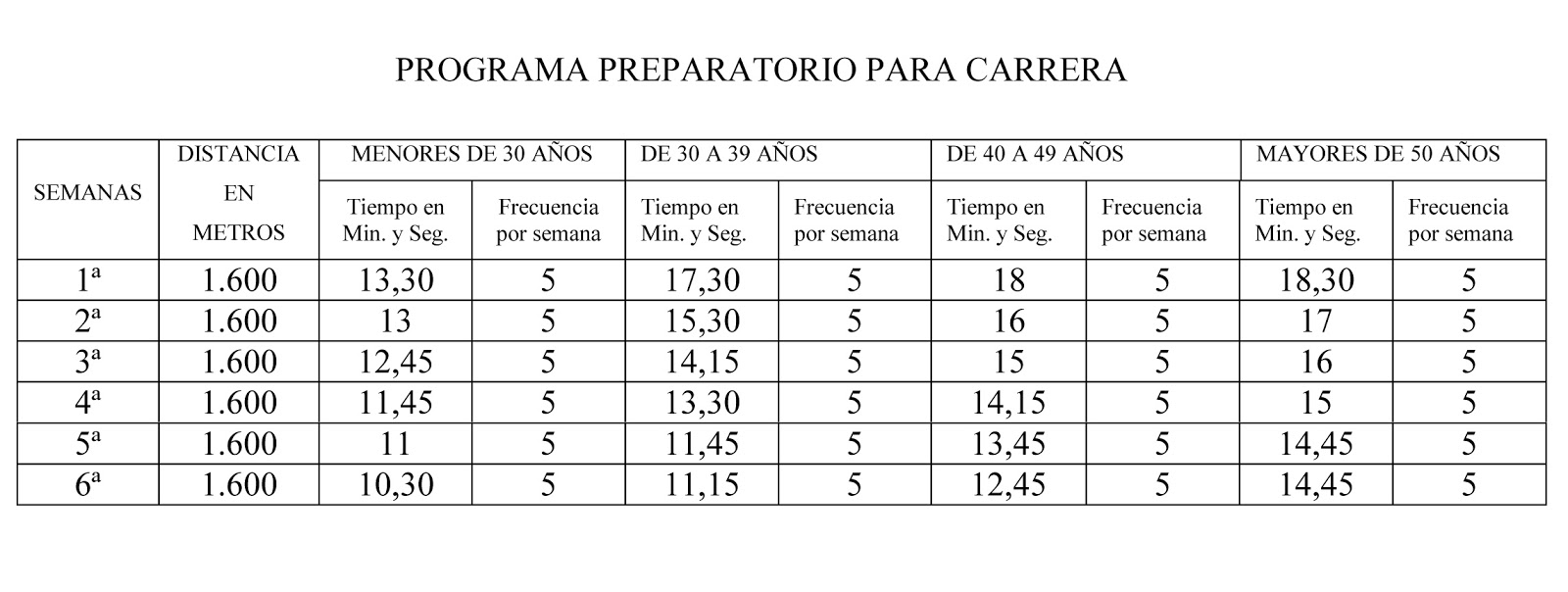 Y luego 7 semanas más de correr de verdad. Por eso decía antes lo de simultanear libertad con control. Os dejo estas tablas por si os son de ayuda. Yo las sigo en la cinta del gimnasio. Es aburrido, lo se, pero allí puedo controlar tiempo, distancia y pulsaciones. Unos días voy a la calle y otros sigo el guión. No lo hago a rajatabla, sino que voy viendo el nivel que voy adquiriendo. Ahora estoy en la semana 9, cuando supere la tabla me olvidaré de ella.Programa de carrera