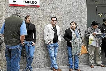 Inmigrantes mientras esperan ser atendidos en el Inem