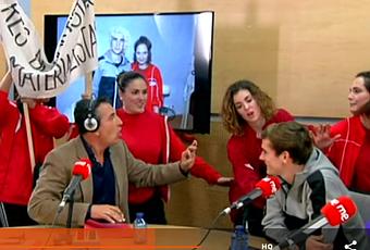 Este colectivo, “Jugadoras en acción”, por lo que indica Google, no existe: los únicos resultados son noticias sobre el programa. Es decir, que los guionistas se lo han inventado, pero la cuestión es que el retrato que hacen de ellas no es precisamente muy positivo: primero tratan de avergonzar al jugador de fútbol pidiéndole que les firme autógrafos en las piernas (“¡no me lo voy a lavar nunca!”, dice una: al parecer en el mundo del fútbol femenino aún viven en los 90 y no han llegado los móviles con cámara de fotos) y cosas por el estilo, y cuando ya entran en el tema reivindicativo, ya directamente se comportan como cuatro energúmenas, gritando y comportándose como unas locas.