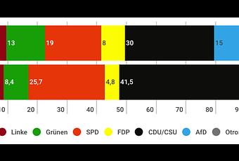 - CDU/CSU (conservador, democristiano) 30% (-11,5)