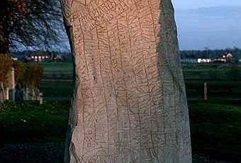 sueco (Rökstenen) con inscripciones rúnicas (alfabeto que usaron los pueblos
