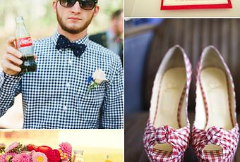 Some days ago we suggested using chevron details in your wedding. Today we turn to gingham fabric, after getting obsessed for days with a pair of Miu Miu in that pattern. It is perfect for a country wedding, combined with burlap, doilies, vintage cans…
