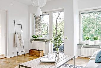 Luz a raudales, el blanco para potenciar esa entrada de luz natural y el verde de los árboles que asoman por las ventanas, y también de los detalles de plantas y flores que salpican cada rincón, para acabar de aportar frescura, y sensación de bienestar y relajación, en una casa de 72 metros cuadrados que no resulta para nada agobiante. Una vez más, la decoración en blanco total acude en ayuda de los espacios reducidos. Y el toque de las plantas naturales, y los pequeños detalles de color y diferentes texturas de los textiles, son fundamentales para que resulte acogedor.