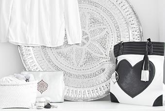tajines de cerámica en negro, sobre mesa de té de madera con bandeja metálica
