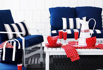 Si te gusta la estética de inspiración náutica o navy, en la imagen que ilustra este post puedes encontrar inspiración para decorar tu terraza. Ya ves que no es necesario recurrir a decoraciones ni combinaciones complejas, con tan sólo unos muebles blancos, unos cojines en color azul marino y algún detalle en color rojo, será más que suficiente para dar a tu terraza ese aire marinero.