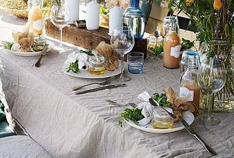No importa cómo sea tu mesa siempre que la cubras con un bonito mantel de lino. Bien sea en color natural o gris.