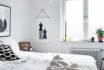 El dormitorio de hoy es un claro ejemplo de ello, ante un ambiente monocromático visten la estancias con elementos como fotografías, plantas naturales y un plaid a modo de manta en color lino, si a eso añadimos texturas como la lana, el punto o similar el resultado es un éxito asegurado.