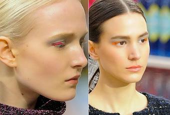 Y así lo vi en el show de Chanel en la semana de la moda de París. Mientras todas las bloggers estaban deslumbradas por el desfile en una especie de supermercado, yo me enamoré de ese maquillaje simple pero con un giro: los ojos estaban maquillados con un gris, con una pequeña iluminación en el lagrimal... y un delineado superior en un color intenso (verde, naranja, rosa).