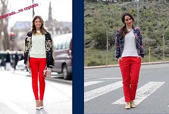 Ya me veis...otra vez copiando ,o debería decir, inspirándome en lo que veo en la web. No me da vergüenza reconocerlo, por qué debería? creo que muy poca gente es realmente original y todos vemos algo que nos gusta y tratamos de llevarlo a nuestro estilo. Creo que eso es la moda precisamente y es ahí donde está la gracia del asunto : en la adaptación que cada uno le damos a las tendencias. Este look de inspiración que me veis hoy lo saqué de Pinterest, uno de los "sitios " favoritos y donde más me gusta mirar y coger ideas. La bomber no se parece para nada a la original de aires orientales y los zapatos de tacón los he cambiado por mis nuevos oxford ( qué raro que lleve planos, verdad?). Espero que os haya gustado mi versión del original de esta chica que no sé quién es . Os deseo un feliz fin de semana a todos. Nos vemos...bye!! Gracias por vuestros comentarios. Thanks for your comments.