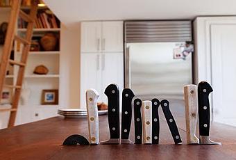 Original forma de guardar y ordenar los cuchillos de cocina la que han utilizado en esta cocina.