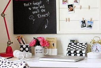 VíaAunque la idea esta sacada de un dormitorio de adolescente la idea en general de suprimir la mesilla de noche por una sencilla mesa de trabajo es atractiva y práctica sobre todo para aquellas personas que buscan tener un espacio de trabajo sencillo, funcional y práctico en casa.
