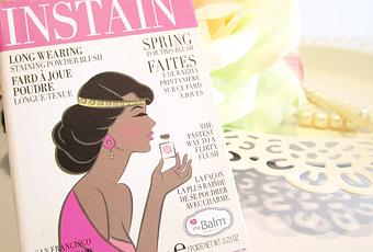 Los Instain Blush de The Balm (que se podrían traducir como "Coloretes en tinte") se presentan en un formato tipo cartón duro que se cierra con imán, cómodo y ligero, al igual que el resto de productos de la firma de San Francisco, y vienen resguardados por una funda con la misma imagen del colorete. Contiene un práctico espejito en su interior coronado por la frase "Wear it well...Vous va bien" que significa "Llevadlo bien..." . Los Instain de The Balm se alejan algo de la estética pin-up de la marca, y nos ofrece una imagen más vintage y retro, como haciéndoles un guiño a los Felices Años 20.