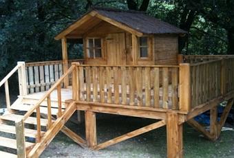 INSTALACIÓN CASITA DE MADERA INFANTIL FELIX POR NUESTRO CLIENTE SR. ANTONIO LÓPEZ DE A CORUÑA SOBRE UNA TARIMA ELEVADA YA EXISTENTE.