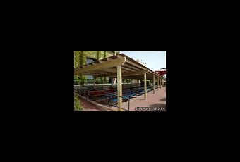 Optamos por madera de Flandes autoclave buscando una madera fiable, duradera y a un precio razonable. Como las pérgolas son grandes y los pilares deben ir separados lo máximo posible, utilizamos en la estructura madera laminada ya que permite mayores secciones sin provocar torsiones o grietas...