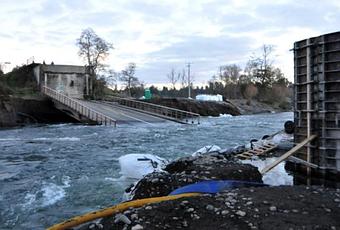 La instalación del puente mecano en Cancura, esta en un 65%, su retraso se ha debido a las fuertes precipitaciones que afecta a la región.