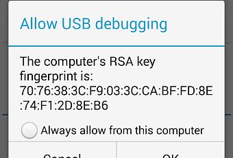 Se le pedirá que permita la depuración de USB desde la computadora Ubuntu como en la captura de pantalla a continuación. Selecciona OK.