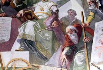 La decoración de la biblioteca no podía descuidar la representación del saber matemático en plena revolución científica. La enseñanza dirigida a la nobleza resaltaba la astronomía, la geografía matemática, la navegación o la artillería.