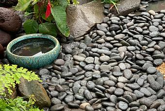 En el centro dispuse una piedra redonda volcánica erigida a modo de islote o escultura central.