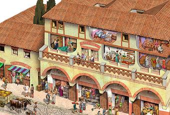 “En este edificio deseo que la insula Sertoriana sea para mi hija. (Hay) seis cenacula, diez tabernae, y un almacén debajo de las escaleras. Que lo disfrute.” (CIL 6.2979114)