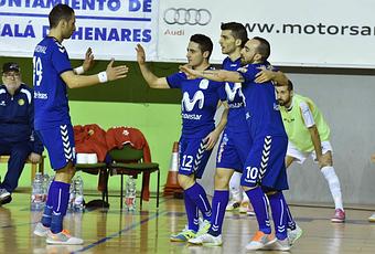 Inter Movistar sudó y sufrió hasta el final para doblegar a un gran rival, el mismo que tendrá en la final de la Copa del Rey, por 4-3. El equipo de Jesús Velasco tuvo que defenderse hasta el último segundo por el portero-jugador del conjunto catalán. Pero Inter Movistar refuerza el liderato de la Liga.Ya nadie duda de que Marfil Santa Coloma, finalista de la Copa del Rey, es uno de los equipos más en forma del momento. El noveno puesto liguero con el que llegaba a Alcalá de Henares no hacía justicia a la calidad de un equipo que dio la ‘campanada’ inicial con el 0-1 en el primer minuto de juego. Inter Movistar se vio sorprendido por una inesperada acción que concluyó con el tanto de Rafa López. A partir de ese instante, los interistas subieron la presión y se lanzaron a por el empate. Tras varias ocasiones y rotaciones, Borja logró el empate tras batir de tiro cruzado al meta Didac. Inter Movistar halló la tranquilidad y comenzó a jugar con mayor precisión. Sin embargo, las ocasiones no eran muy claras. A los locales les costaba más de lo habitual generar acciones de peligro. De hecho, el 2-1 para Inter Movistar llegó con el gol en propia puerta de Adolfo (minuto 14). Los alcalaínos remontaban y, segundos más tarde, ampliaban el marcador con el 3-1. Gol de Ricardinho, que enganchó un balón desde fuera del área para batir a Didac. A pesar de ello, los interistas no lograban acomodarse. Marfil Santa Coloma acortó distancias en otro desajuste defensivo de los de Velasco. El sempiterno goleador Dani Salgado puso el 3-2 en el minuto 18. Con este marcador se llegó al descanso.