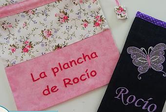 La funda de gafas es de tela vaquera y forro morado con lunaritos blancos, mi nombre en malva y una mariposa. La bolsita para la plancha es en tonos rosas, combinando una lisa y otra con un delicado estampado floral. Son los primeros objetos que tengo personalizados con mi nombre. A pesar de los muchos nombres que aplico o bordo en multitud de artículos que coso, con el mío jamás me he hecho nada. Ya sabéis que suele pasar que lo que hacemos para los demás, no lo hacemos para nosotras mismas. Así que me ha hecho especial ilusión.