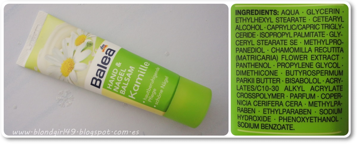 Este otro gel pone "glücksrausch" que he tenido que buscar el significado (porque mi alemán es demasiado básico xD) y significa ruido de la felicidad, la verdad es que es bastante original. Tengo que decir que me llevé una sorpresa tremenda al probar este gel porque no se parece en nada a los aromas a los que estoy acostumbrada, ¿qué os parecería bañaros con una mezcla de aromas como de Coca-Cola y bebida energética? pues precisamente tenía un olor bastante similar, no supe asociarlo bien a una bebida en concreto pero por ahí van los tiros ¿será por eso lo de "ruido de la felicidad"?. Tengo que decir que ¡me ha encantado! El aroma es bastante dulzón pero sin empalagar, me gustó tanto que luego he mirado en Müller a ver si lo encontraba y por el momento no lo he visto (tienen otros aromas pero este en concreto todavía no). También es en gel y de color como de Coca-Cola diluida con un poco de agua jajaja. Era una minitalla de 50ml. *HAND & NAGEL BALSAM de BALEA*
