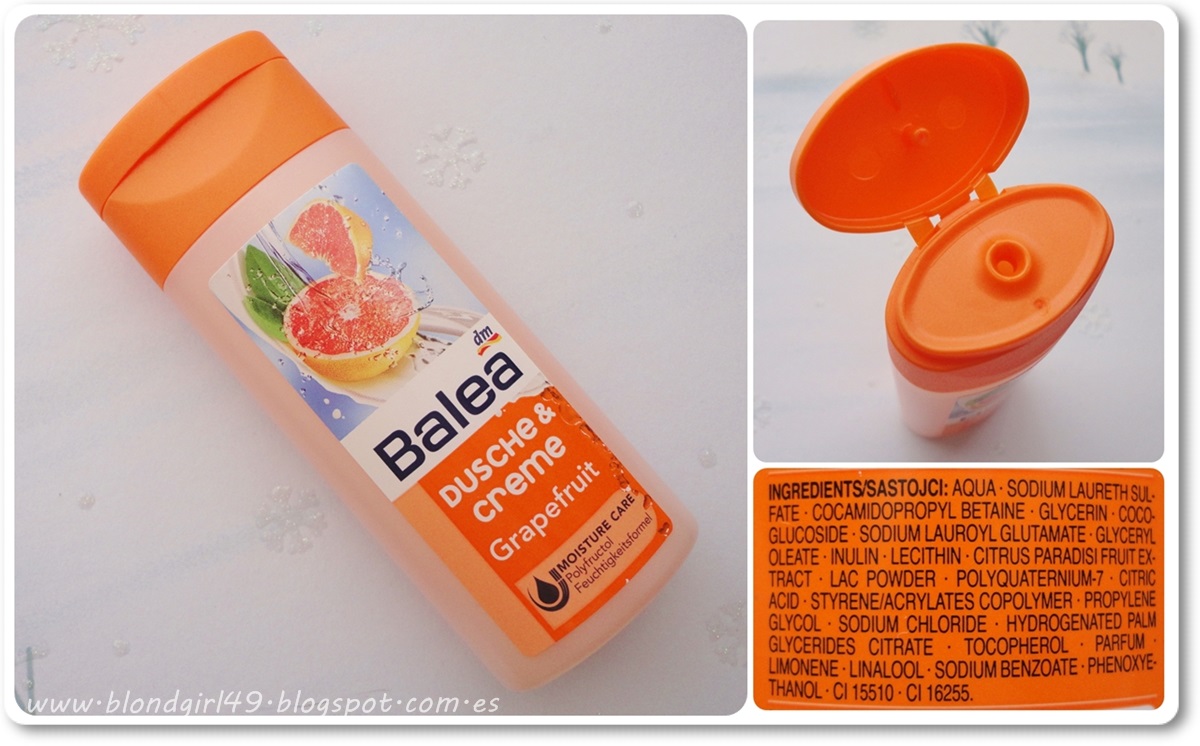 Es un gel en crema de "grapefruit" o lo que viene siendo lo mismo de pomelo, huele de maravilla y está muy bien conseguido el aroma. Es gel tiene muy buena consistencia al ser un poco cremoso, es de color melocotón y hace bastante espumita. Algo que noté enseguida es que el aroma permanece en la piel bastantes horas^^. Era una minitalla de 50ml pero cunde mucho y da para varias duchas. Lo bueno es que el envase lo he lavado y puedo emplearlo para hacer intercambios jiji*ENERGIE DUSCHE de BALEA*
