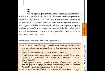 Un interesante programa de "Estudiantes Ayudantes para una Sana Convivencia", es lo que nos presenta este material.Como se señala en la introducción de esta propuesta, busca que los estudiantes aparte de ser actores principales, sean personas activas en el mejoramiento de una sana convivencia. Otro aspecto a considerar, se evidencia en el siguiente párrafo: "Los documentos que presentamos a continuación se basan en actuaciones que se están realizando en la actualidad en los nueve centros del Puerto de Santa María (Cádiz), pertenecientes a la Red Andaluza “Escuela: Espacio de Paz”, que llevan a cabo el Proyecto “Redes de Convivencia”. Los presentamos para que sirvan de orientación a aquellos centros y profesionales que deseen conocer, profundizar u optar por la implantación de esta medida dentro de su Plan de Convivencia."A continuación les dejo el link para descargarlo: ¡Pinchar Aquí!.
